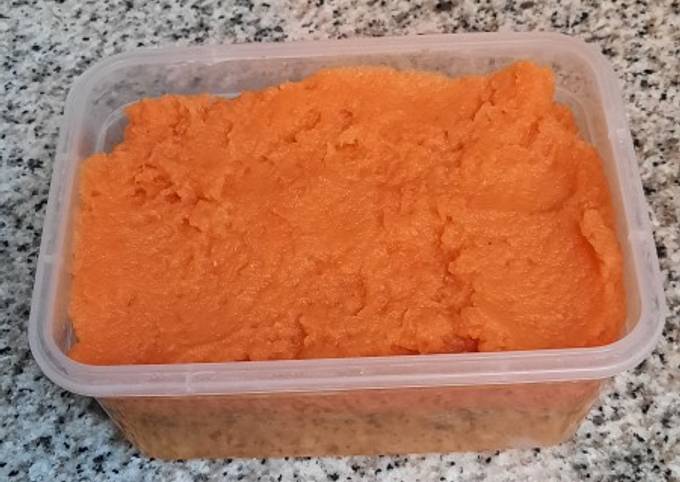 - Éplucher et couper les patates douces en morceaux et les faire cuire dans une casserole d'eau bouillante pendant 20 minutes.