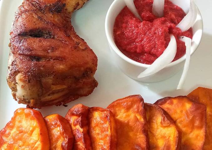 moyen le plus simple de préparer Délicieux Cuisse de poulet frit/patate douce et sauce betterave mayo