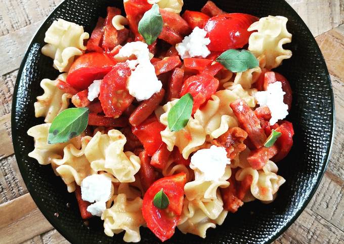 Recette: Appétissant Pâtes tomates bacon chèvre ☘️🍅