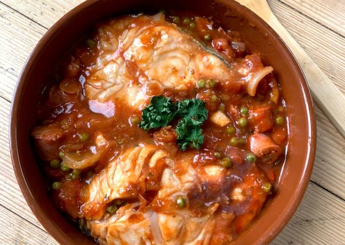 ☆Cabillaud à la Tomate et Saucisses de Volaille☆.