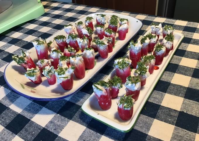 - Mettre un peu de crème à la ricotta dans chaque radis.