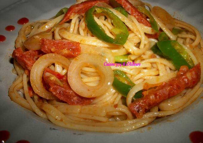 moyen le plus simple de cuisiner Délicieux Linguine au Curry Rouge Thaï, Chorizo fort & Gros Piment Vert