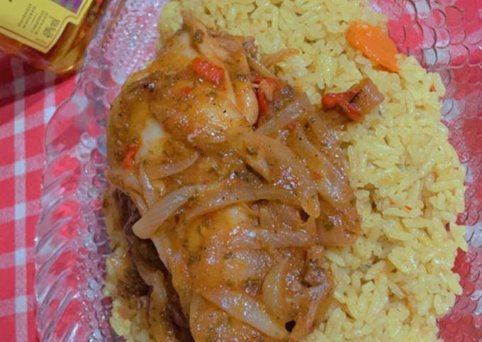 - Servir et manger avec soit du poulet ou du poisson, moi j’ai opté pour le poulet. Bon appétit 😋.