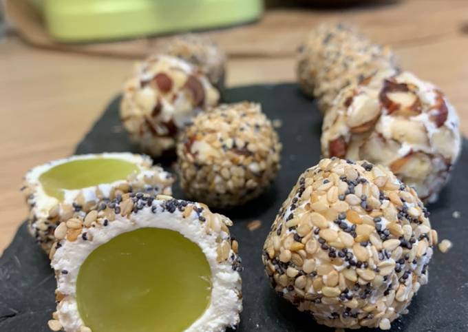 Billes surprises apéritives chevre frais / pistache petit à petit de recette